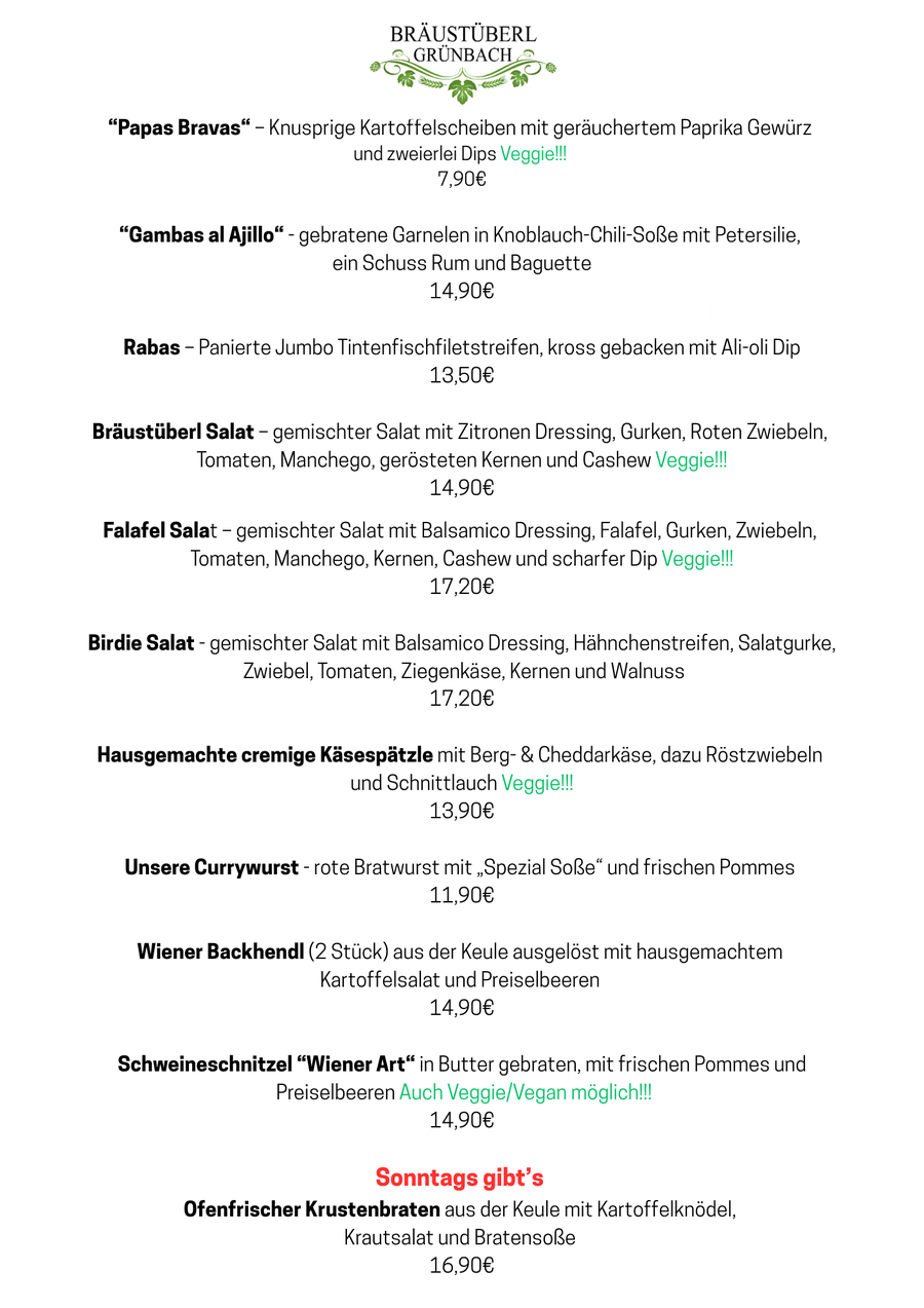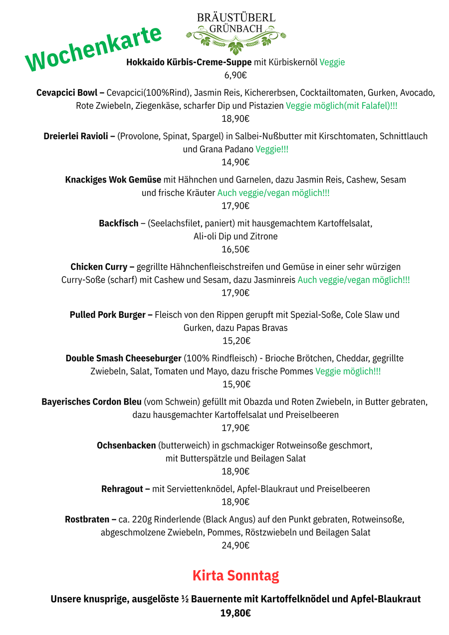 Herzlich Willkommen im Bräustüberl Grünbach